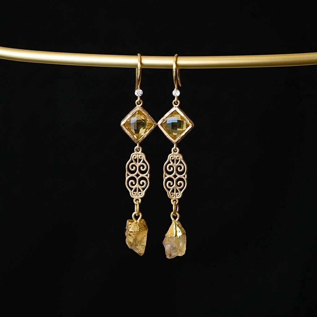 Farah citrine, filigree and yellow crystal earrings