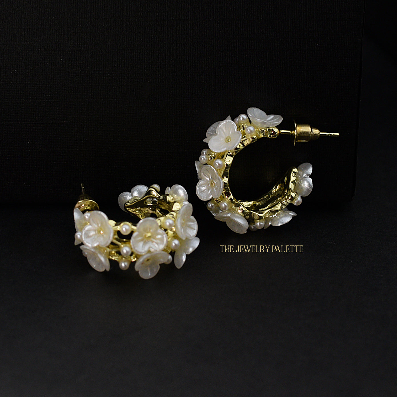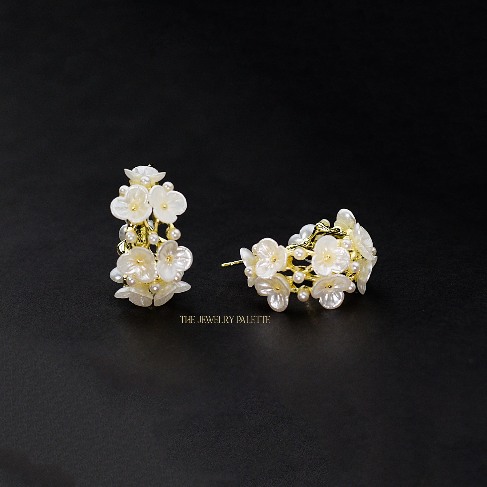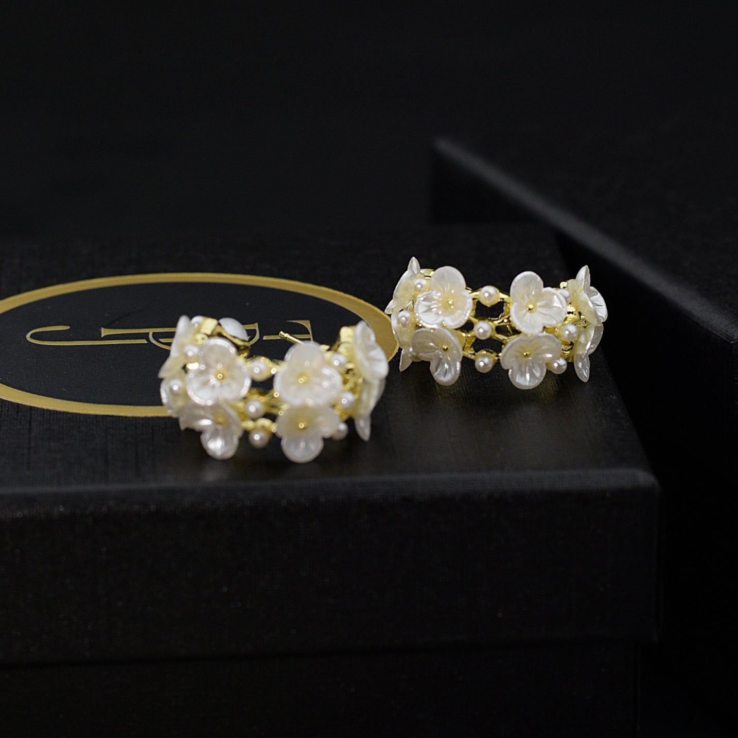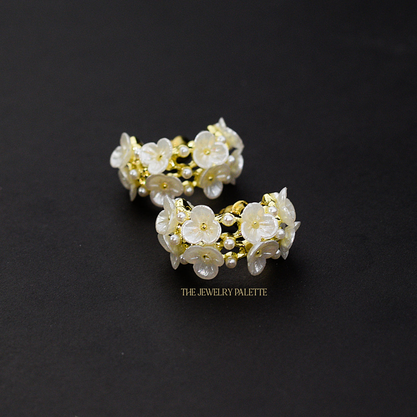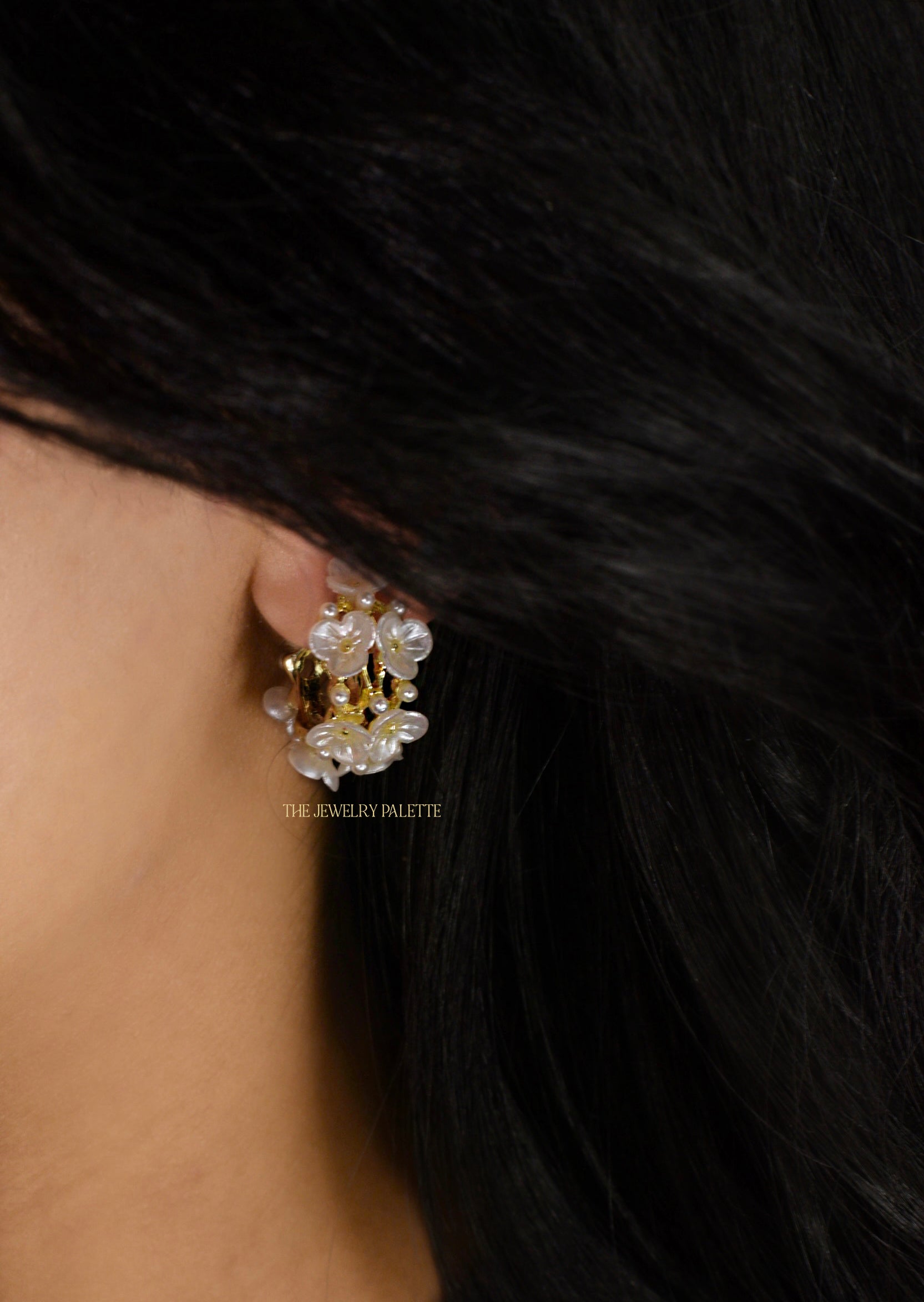Sibel white flower pearl hoop earrings
