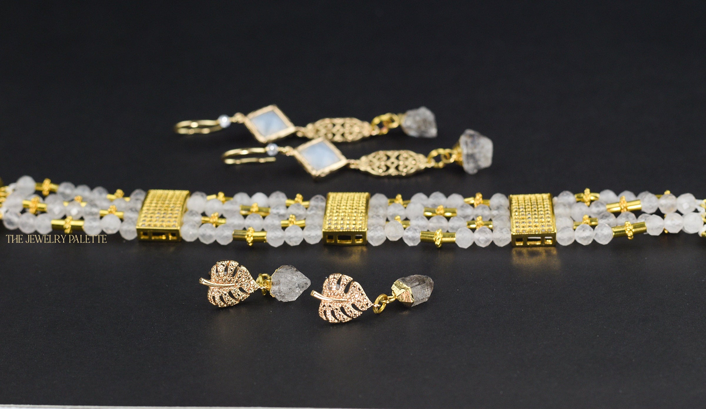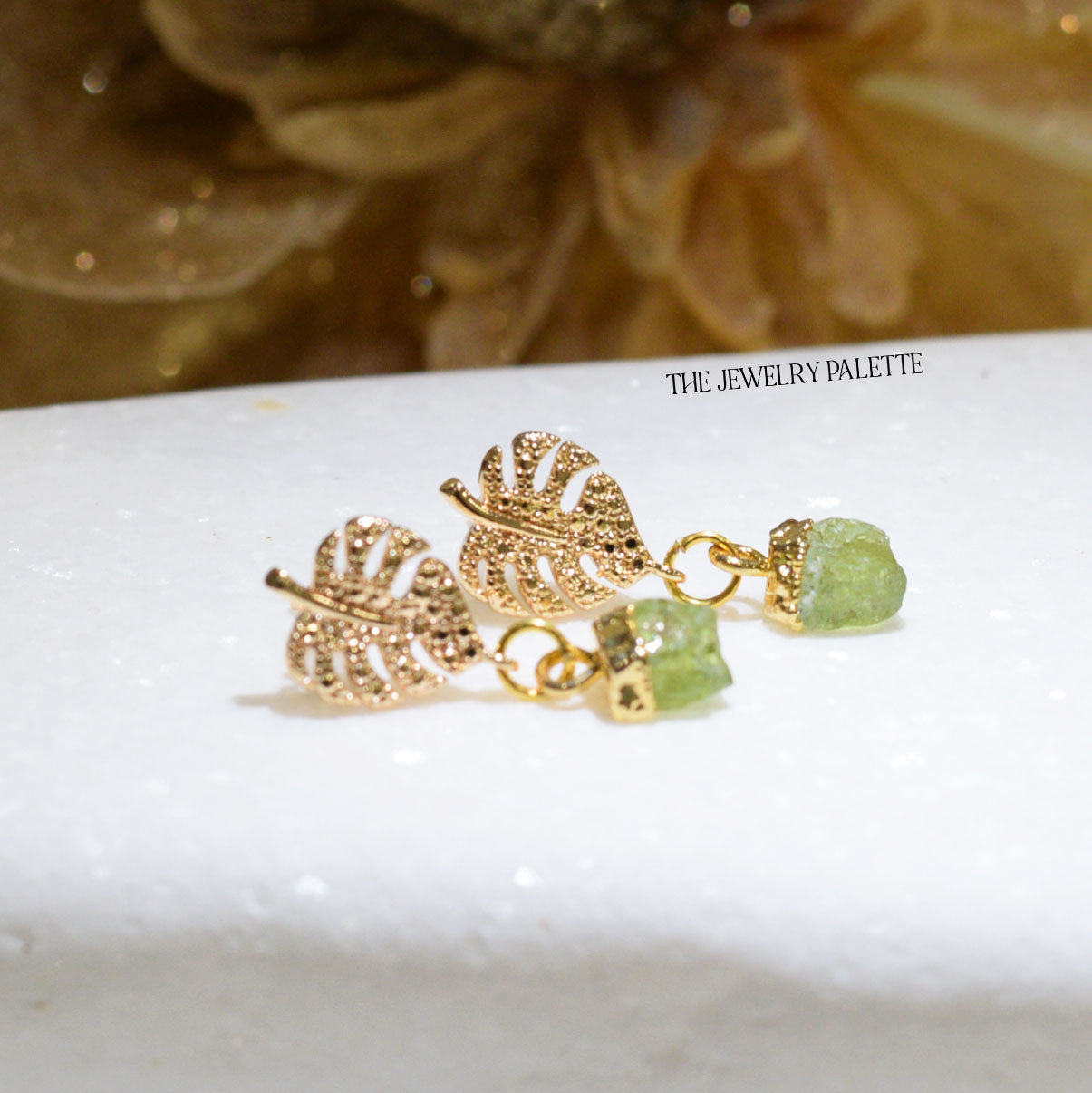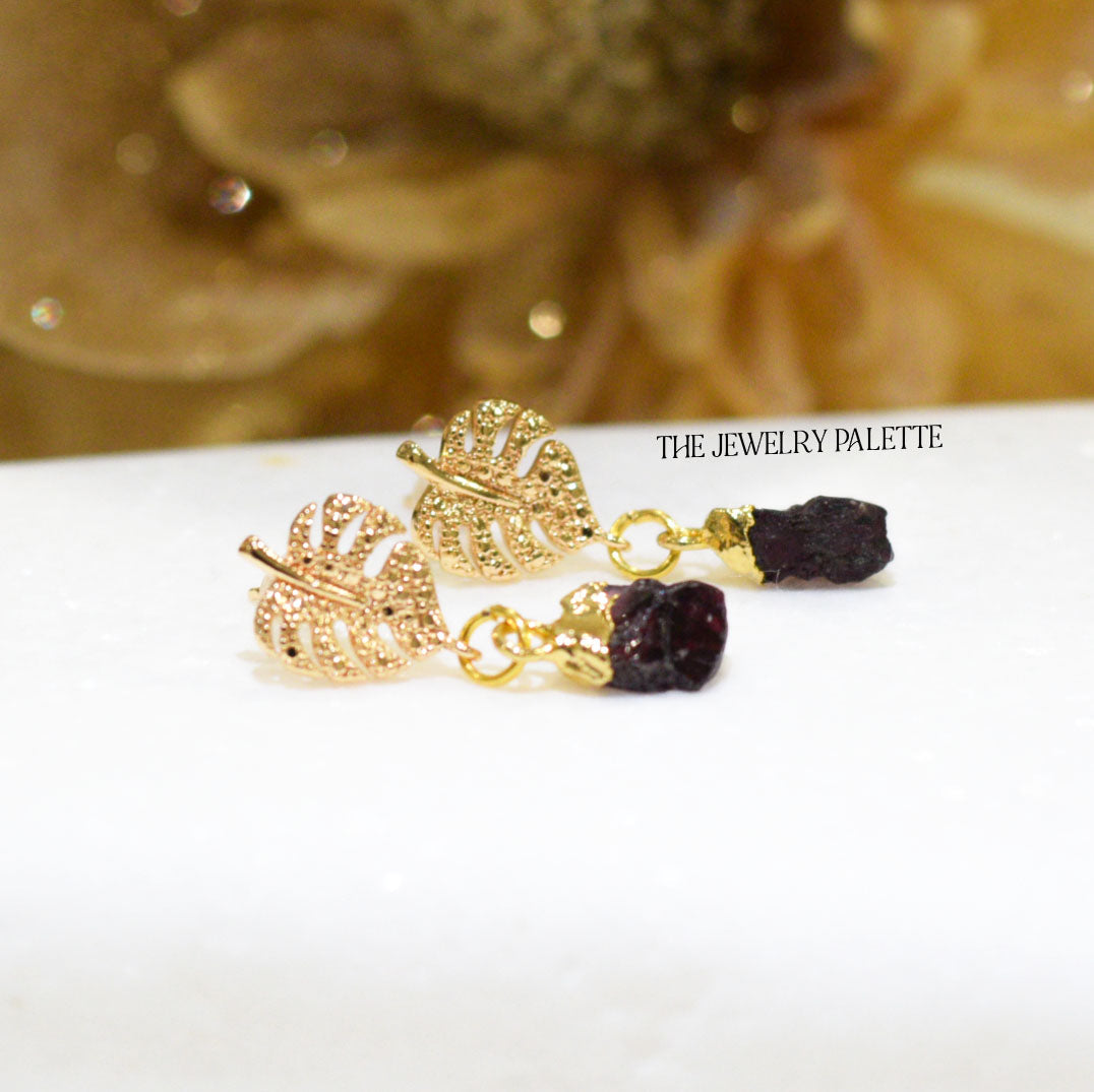 Dania gold leaf with gold edged birthstone drop earrings