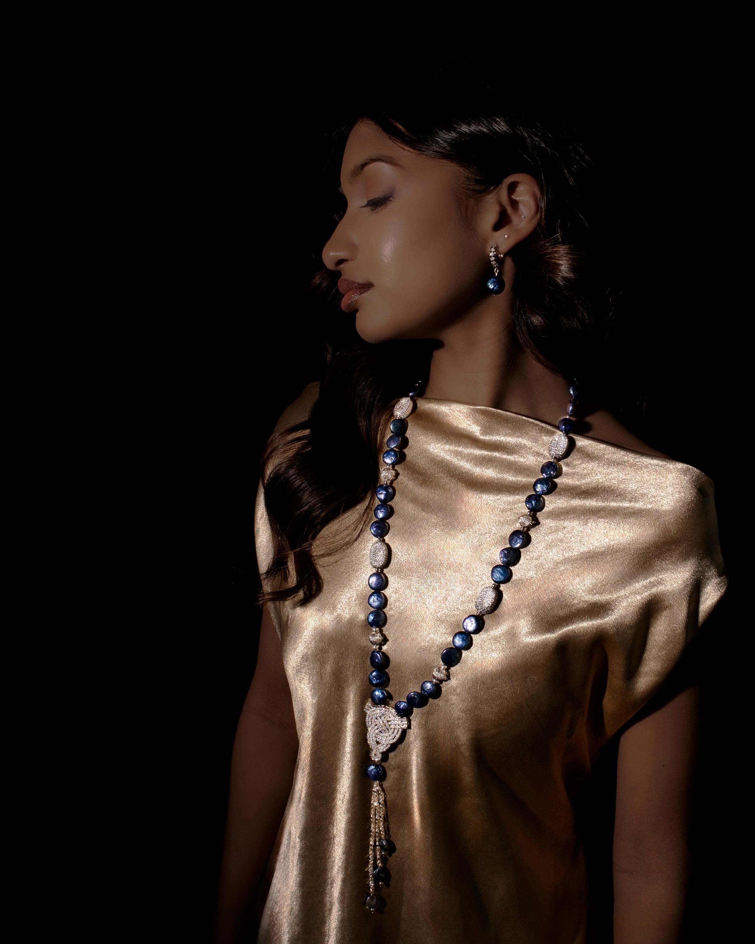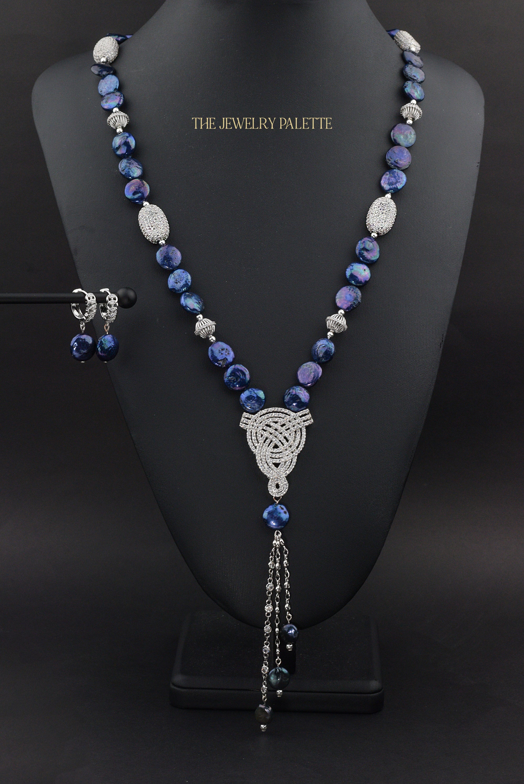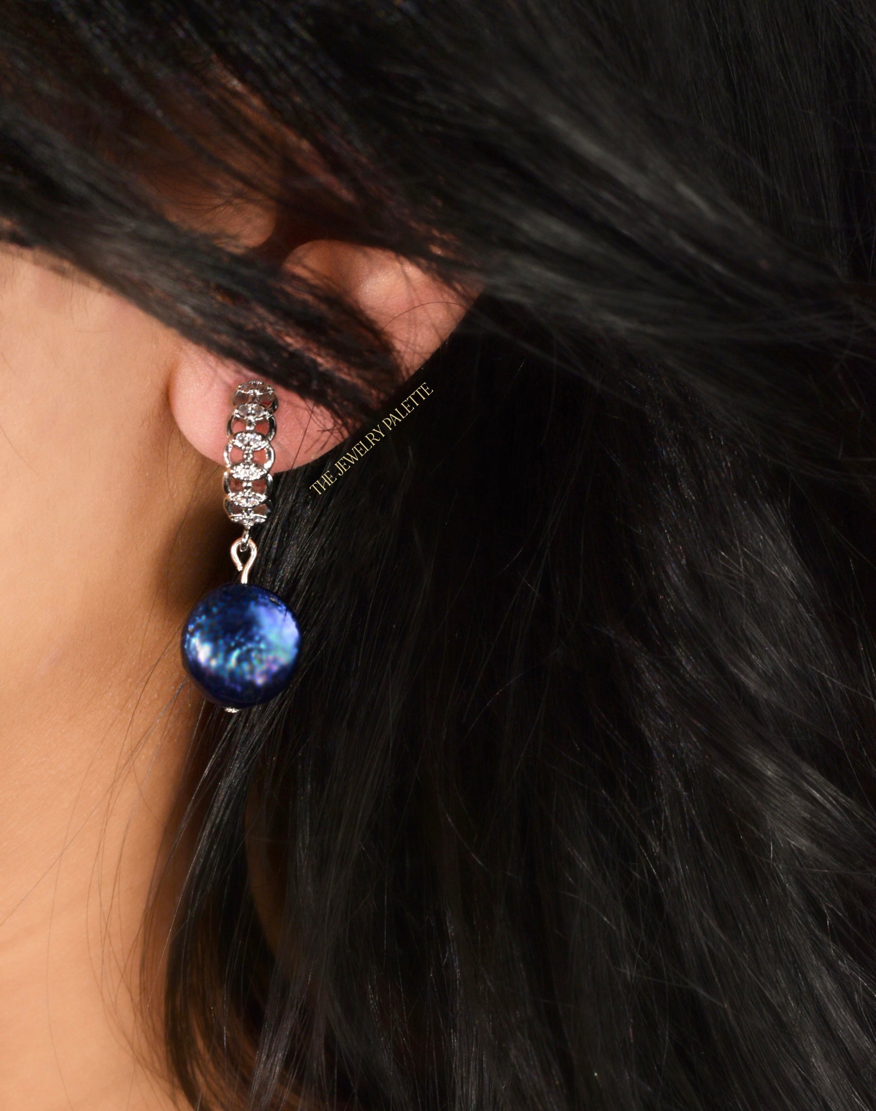 Veronica navy blue coin pearl drop and silver earrings